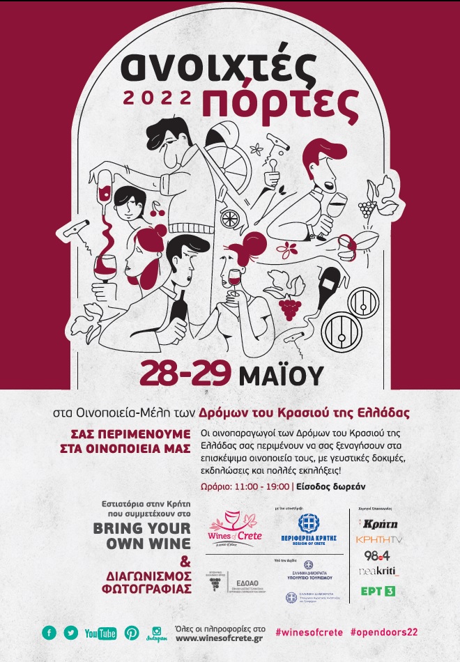 Μια μοναδική γευστική και ταξιδιωτική εμπειρία θα έχουν την ευκαιρία να βιώσουν οι φίλοι και οι φίλες του κρασιού σε όλη την Ελλάδα, συμμετέχοντας στην εκδήλωση «Ανοιχτές Πόρτες» με την υποστήριξη της Περιφέρειας Κρήτης.
