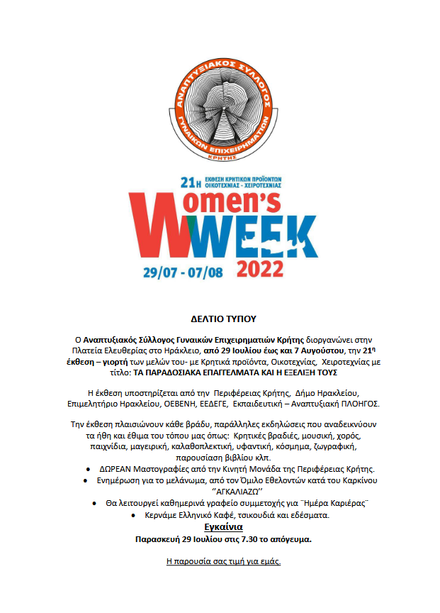 Την Παρασκευή τα εγκαίνια της έκθεσης- γιορτής των μελών του από τον Αναπτυξιακό Σύλλογο Γυναικών Κρήτης!