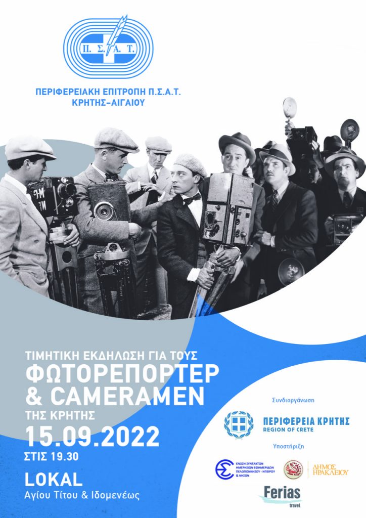 Ο Πανελλήνιος Σύνδεσμος Αθλητικού Τύπου (ΠΣΑΤ) και η Περιφερειακή Επιτροπή ΠΣΑΤ Κρήτης – Αιγαίου διοργανώνει τιμητική εκδήλωση στο Ηράκλειο, με ξεχωριστή σημασία για το αθλητικό και όχι μόνο ρεπορτάζ – φωτορεπορτάζ.