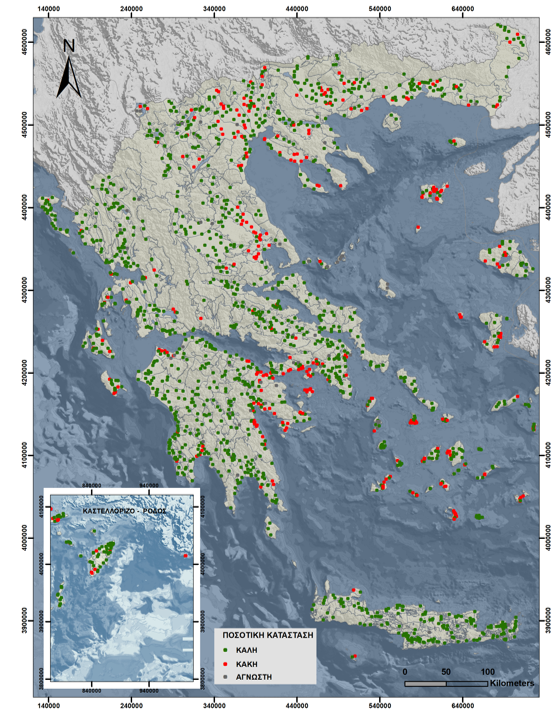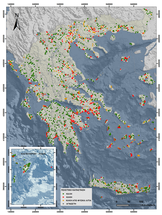 Με βάση τις διαθέσιμες χημικές αναλύσεις και μετρήσεις πεδίου πραγματοποιήθηκε ο χαρακτηρισμός αναφορικά με την ποσοτική και ποιοτική κατάσταση των σταθμών παρακολούθησης των υπόγειων υδάτων της χώρας.