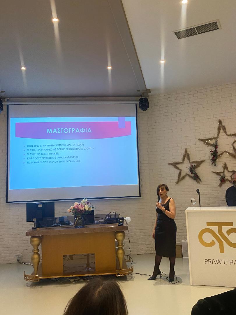 Μια ξεχωριστή βραδιά με πλήθος γυναικών πραγματοποίησε το Πανελλήνιο Αθλητικό σωματείο γυναικών Καλλιπατειρα με θέμα <<Πρόληψη και καρκίνος του μαστού >> με ομιλήτριες την ογκολόγο παθολόγο Γεωργία Μηλάκη και την ιατρό ακτινολόγο Ειρήνη Σταμούλη στο Rotonda private hall .