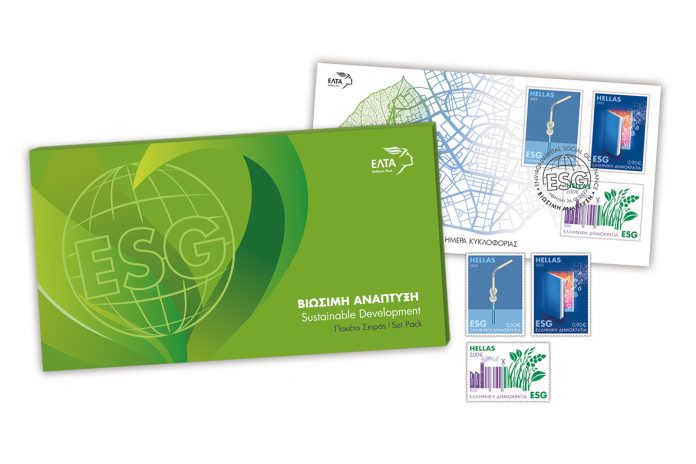 Η Σειρά Γραμματοσήμων «Βιώσιμη Ανάπτυξη – ESG» περιλαμβάνει, επίσης, Φακέλους Πρώτης Ημέρας Κυκλοφορίας και Set Pack που περιέχει όλα μαζί τα προϊόντα. Μπορείτε να τα βρείτε στα ταχυδρομικά καταστήματα και στο e-shop μας, philotelismos.gr, από τις 26 Ιανουαρίου.