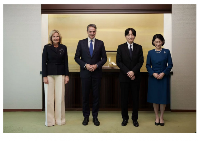 Ο Έλληνας πρωθυπουργός και η σύζυγός του Μαρέβα Γκραμπόφσκι-Μητσοτάκη είχαν νωρίς το πρωί συνάντηση με τον διάδοχο του ιαπωνικού θρόνου, πρίγκιπα Aκισίνο, και την πριγκίπισσα Ακισίνο.