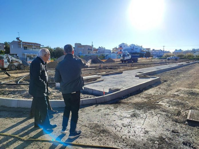 Ο Δήμαρχος, συνοδευόμενος από τον Αντιδήμαρχο Τεχνικών Έργων Γιάννη Αναστασάκη περπάτησε στην περιοχή των εργασιών και ενημερώθηκε από τον ανάδοχο για την πορεία τους.