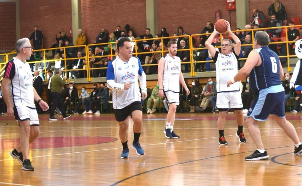 Mάλιστα, ο Γιώργος Κουμουτσάκος έβαλε και δύο τρίποντα, κάνοντας τον πρώην δήμαρχο Χαλανδρίου Γρηγόρη Ζαφειρόπουλο να τον αποκαλέσει γελώντας «τριποντάκια».