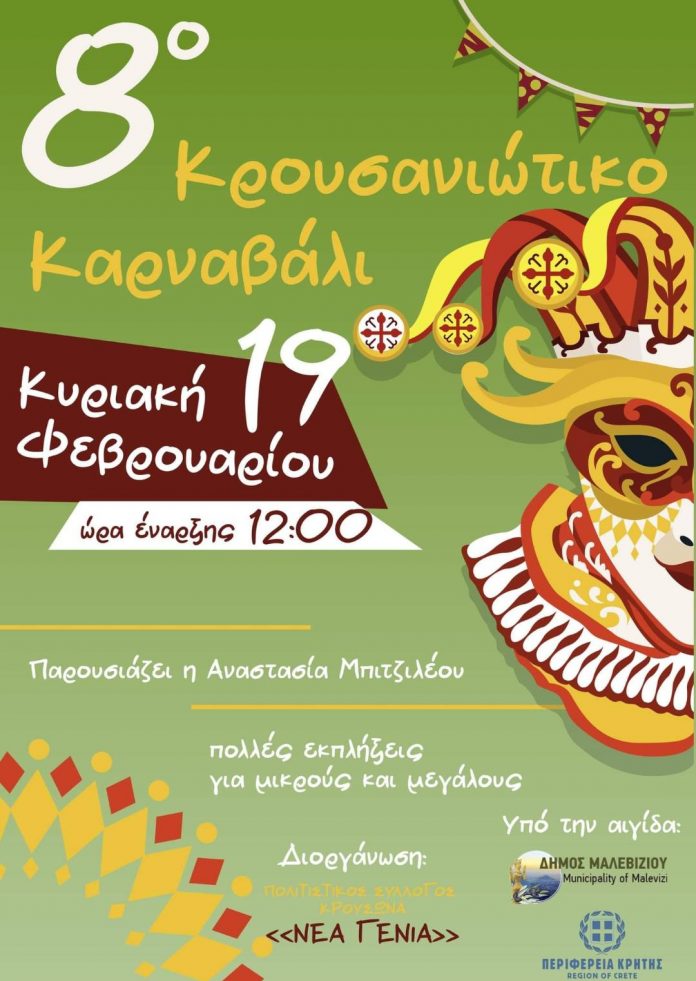 Τη διοργάνωση του 8ου Κρουσανιώτικου Καρναβαλιού έχει αναλάβει ο Πολιτιστικός Σύλλογος Κρουσώνα «Νέα Γενιά» και τελεί υπό την αιγίδα του Δήμου Μαλεβιζίου με την υποστήριξη της Περιφέρειας Κρήτης.