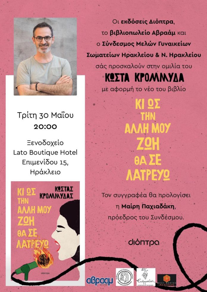 Ο Σύνδεσμος Μελών Γυναικείων Σωματείων Union of Women Association, έχει τη χαρά να συμπαρουσιάζει το νέο βιβλίο του καταξιωμένου συγγραφέα Κώστα Κρομμύδα που αφορά στη ζωή μίας γυναίκας η οποία, αν και γνώρισε την κακοποίηση και εκμετάλλευση, κατάφερε να επιβιώσει.