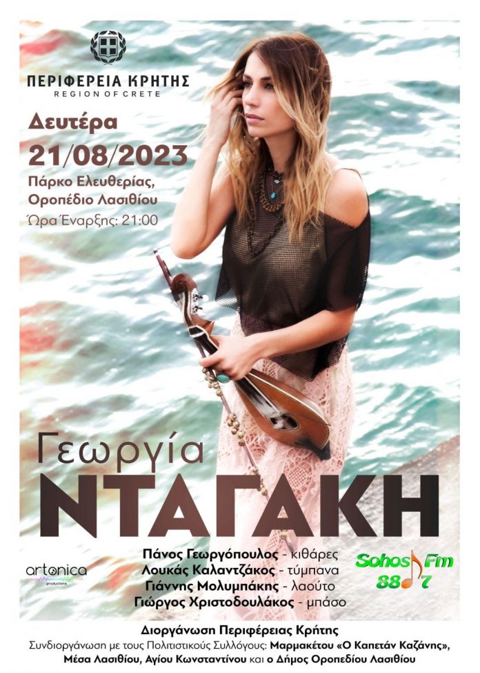 Συναυλία με την Γεωργία Νταγάκη θα δοθεί τη Δευτέρα 21 Αυγούστου στις 9 το βράδυ στο πάρκο Ελευθερίας στο Οροπέδιο Λασιθίου, με την στήριξη της Περιφέρειας Κρήτης.
