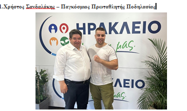 «Μεγάλη τιμή είναι για μένα να βρίσκομαι στο ψηφοδέλτιο του κυρίου Μιχάλη Καραμαλάκη, ενός ανθρώπου με τεράστια εμπειρία, που θα κάνει το Ηράκλειο καλύτερο για όλους. Ως παγκόσμιος πρωταθλητής στην ποδηλασία ατόμων με αναπηρία, γνωρίζω καλά τις δυσκολίες των ατόμων με αναπηρία αλλά και γενικότερα του αθλητισμού.