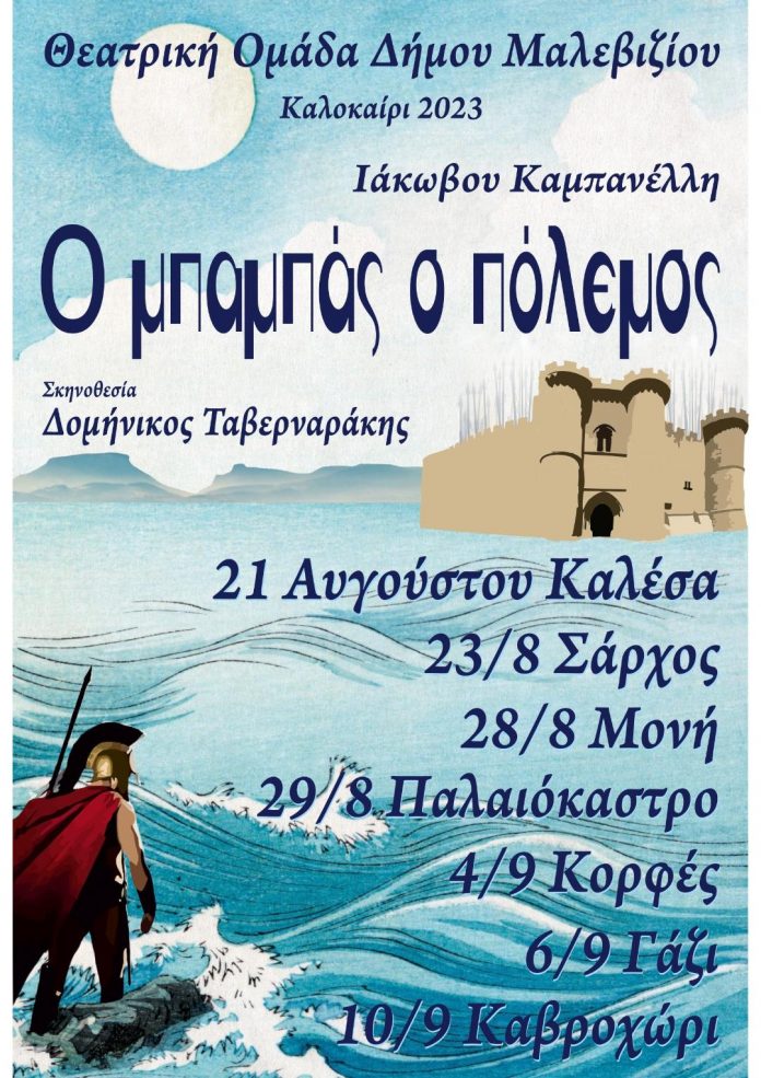Στο Σάρχο σήμερα η Θεατρική Ομάδα του Δήμου Μαλεβιζίου με την κωμωδία «Ο μπαμπάς ο πόλεμος»