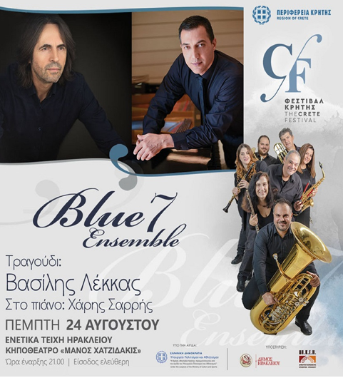 ΣΥΝΑΥΛΙΑ από τους «Blue7 ensemble» στο πλαίσιο του «Φεστιβάλ Κρήτης», που διοργανώνει η Περιφέρεια Κρήτης στο Κηποθέατρο «Μάνος Χατζιδάκις» την Πέμπτη 24 Αυγούστου στις 21:00