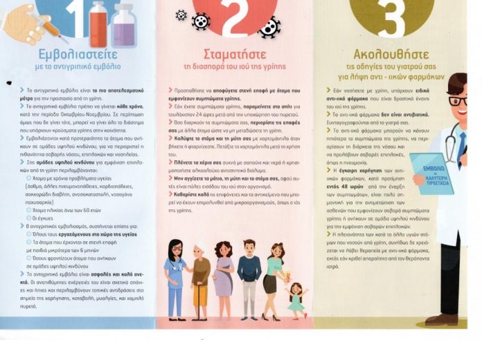 Για τους παραπάνω λόγους επικοινωνήστε άμεσα με τον ιατρό σας προκειμένου να διενεργήσει τον ενδεδειγμένο για τον καθένα εξατομικευμένο αντιγριπικό εμβολιασμό, ειδικά αν ανήκετε στην ομάδα υψηλού κινδύνου.