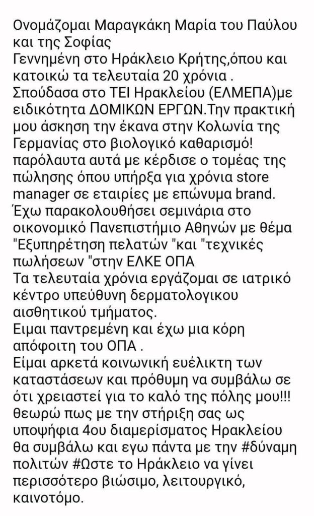 Μαρία Μαραγκάκη: Είμαι πρόθυμη να συμβάλλω σε ότι χρειαστεί για το καλό της πόλης μας!