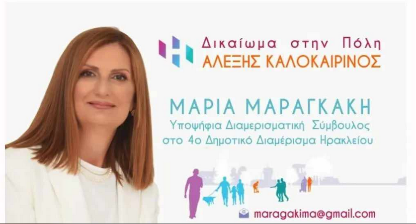 Η Μαρία Μαραγκάκη ειναι υποψήφια διαμερισματική Σύμβουλος στο 4ο Δημοτικό Διαμέρισμα με τον συνδυασμό Δικαίωμα στην πόλη και τον Αλέξη Καλοκαιρινό.