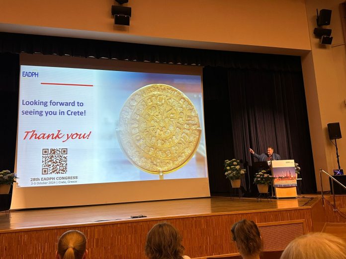 - Επισφραγίστηκε η ανάληψη από την Ελλάδα του επόμενου Συνεδρίου της EADPH, που θα πραγματοποιηθεί στο Ηράκλειο το διάστημα 3-5 Οκτωβρίου 2024. Μάλιστα το κοινό υποδέχθηκε την παρουσίαση του Συνεδρίου της EADPH στην Κρήτη με θερμά χειροκροτήματα! Ενθουσίασε μάλιστα τους συμμετέχοντες το μικρό αλλά εξαιρετικά συμβολικό δώρο με τον δίσκο της Φαιστού που τους έδωσαν οι Έλληνες εκπρόσωποι.