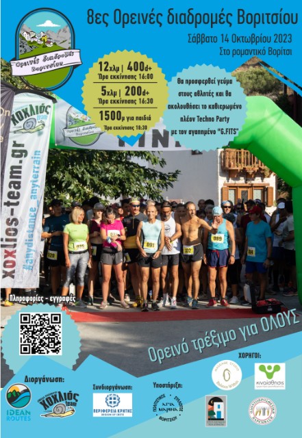 Η Περιφέρεια Κρήτης, η αστική μη κερδοσκοπική εταιρία «IDEAN ROUTES – ΔΙΑΔΡΟΜΕΣ ΙΔΑΙΑΣ», η ομάδα τρεξίματος «Χοχλιός team», και ο πολιτιστικός σύλλογος “η Αγία Μαρίνα”, συνδιοργανώνουν τις 8ες Ορεινές Διαδρομές Βοριτσίου το Σάββατο 14 Οκτωβρίου.