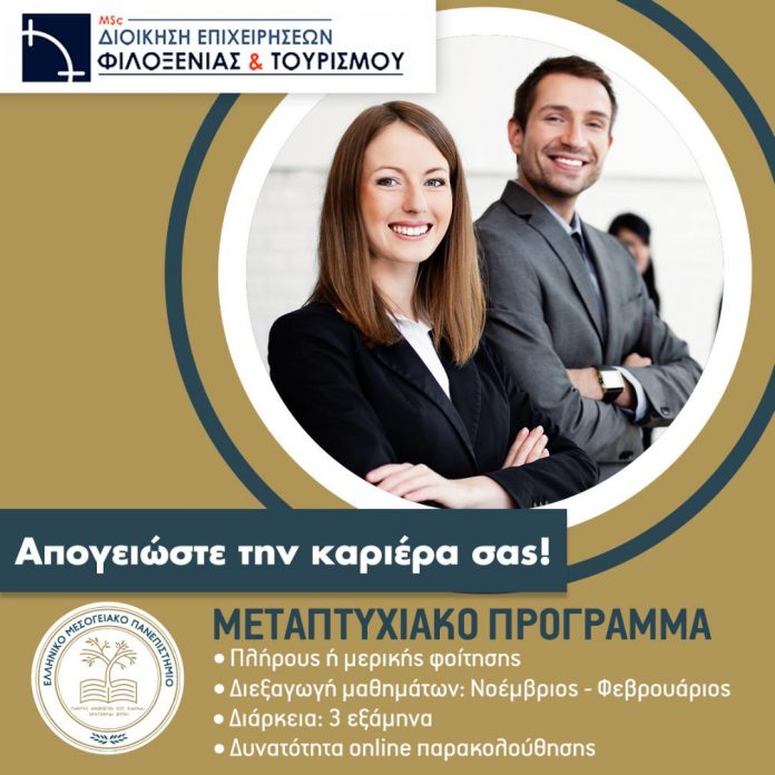 Το Τμήμα Διοίκησης Επιχειρήσεων και Τουρισμού του Ελληνικού Μεσογειακού Πανεπιστημίου (ΕΛΜΕΠΑ) ανακοινώνει το νέο κύκλο σπουδών της ακαδημαϊκής περιόδου 2024-25, του Προγράμματος Μεταπτυχιακών Σπουδών, με τίτλο: «Διοίκηση Επιχειρήσεων Φιλοξενίας και Τουρισμού».