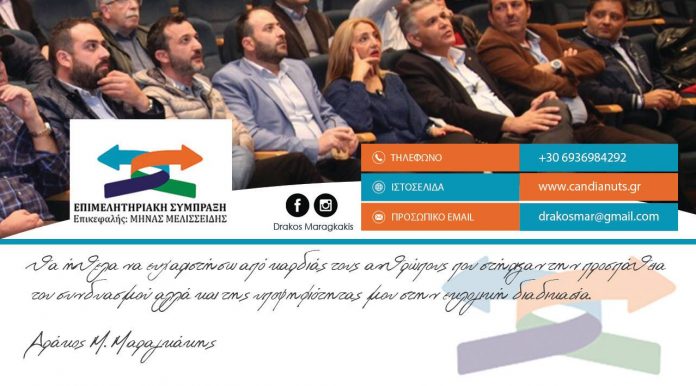 Ο Δράκος Μαραγκάκης υποψήφιος με την ”Επιμελητηριακή Σύμπραξη” και επικεφαλής τον Βαγγέλη Καρκανάκη, μετά την καταμέτρηση των ψήφων εκλέγεται πρώτος στο τμήμα του Εμπορίου και μάλιστα με 224 ψήφους.