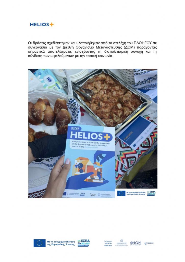 Οι δράσεις σχεδιάστηκαν και υλοποιήθηκαν από τα στελέχη του ΠΛΟΗΓΟΥ σε συνεργασία με τον Διεθνή Οργανισμό Μετανάστευσης (ΔΟΜ) παράγοντας σημαντικά αποτελέσματα, ενισχύοντας τη διαπολιτισμική συνοχή και τη σύνδεση των ωφελούμενων με την τοπική κοινωνία.