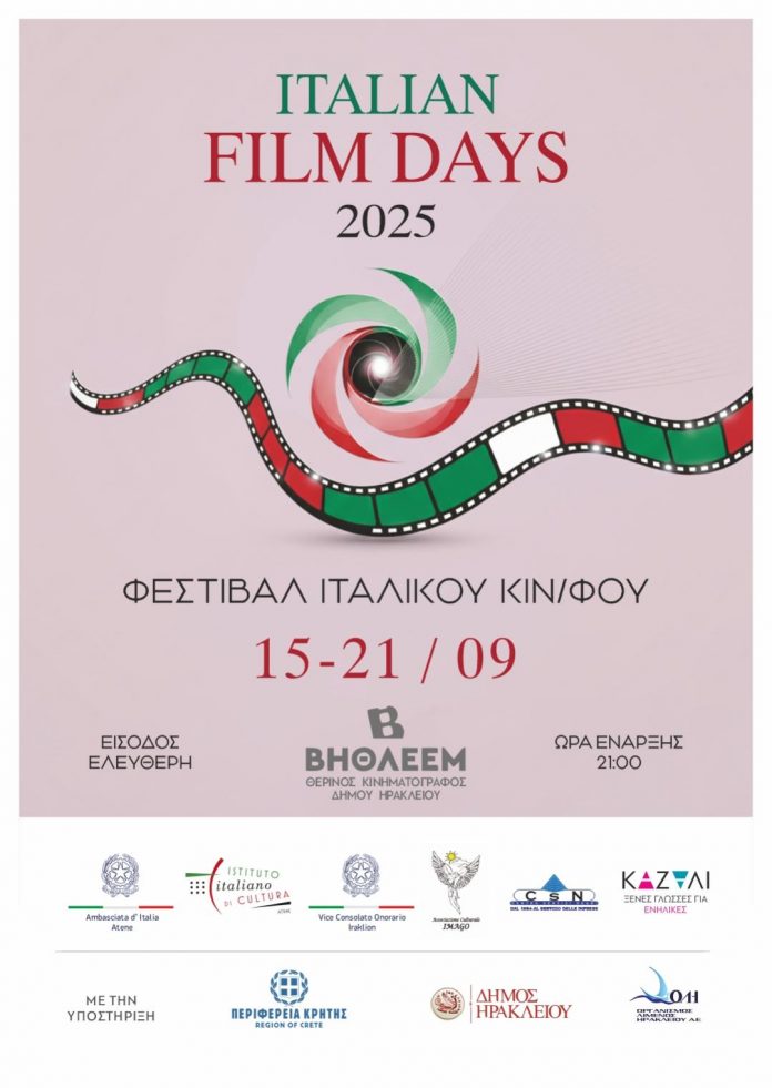 Η πρεμιέρα του Φεστιβάλ Ιταλικού Κινηματογράφου “Italian Film Days 2025” με είσοδο ελεύθερη για το κοινό, πραγματοποιείται σήμερα Δευτέρα 15 Σεπτεμβρίου στις 21:00 με την ταινία Tutto il mio folle amore στον Δημοτικό θερινό Κινηματογράφο Βηθλεέμ.