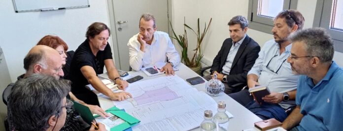 Συνάντηση πραγματοποιήθηκε στο Δημαρχείο του Δήμου Χερσονήσου στις Γούρνες, με επικεφαλής τον Δήμαρχο Χερσονήσου κ. Ζαχαρία Δοξαστάκη κι εκπροσώπους της εταιρίας ακινήτων Dimand Α.Ε., η οποία και διαχειρίζεται το μεγάλο Project αξιοποίησης έκτασης εντός του χώρου της Πρώην Αμερικανικής Βάσης Γουρνών. Στην σύσκεψη συμμετείχαν, μεταξύ άλλων, μηχανικοί της εταιρίας, στελέχη της Διεύθυνσης Τεχνικών Έργων του Δήμου κι εκπρόσωποι της ΔΕΥΑ Χερσονήσου.