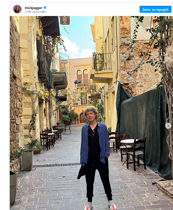 Ο θρυλικός frontman των Rolling Stones, Μικ Τζάγκερ, βρέθηκε στην Κρήτη, χαρίζοντας στους διαδικτυακούς του ακόλουθους σπάνιες εικόνες από το ταξίδι του.