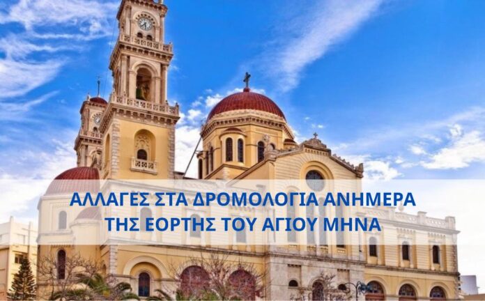 Η ΚΤΕΛ Ηρακλείου Λασιθίου Α.Ε. ενημερώνει το επιβατικό κοινό ότι ανήμερα της εορτής του Αγίου Μηνά, Πολιούχου του Ηρακλείου, την Τρίτη 11 Νοεμβρίου 2025, θα πραγματοποιηθούν τροποποιήσεις στα δρομολόγια των γραμμών μας.