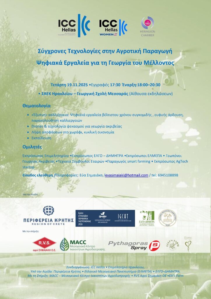 την Τετάρτη 19 Νοεμβρίου 2025, στις 17:30, στη ΣΑΕΚ Ηρακλείου – Γεωργική Σχολή Μεσαράς, στην αίθουσα εκδηλώσεων.
