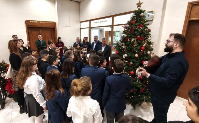Επίσης την Περιφέρεια επισκέφθηκαν και έψαλαν τα Χριστουγεννιάτικα κάλαντα οι μικροί μαθητές και μαθήτριες από το «Junior Academy-Χερρονάσιος Σχολή».