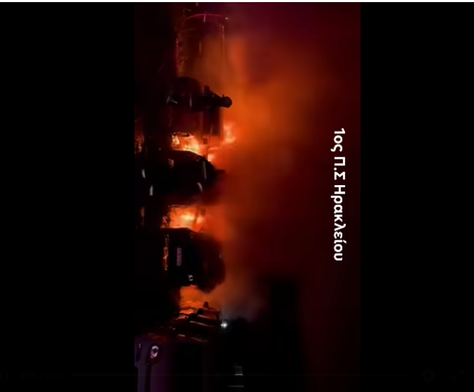 Σε εμπρηστική ενέργεια αποδίδεται ξεκάθαρα η πυρπόληση των ενοικιαζόμενων αυτοκινήτων σε χώρο στάθμευσης στην Ε.Ο. Ηρακλείου-Μοιρών