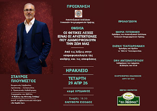 θα πραγματοποιηθεί την Τετάρτη 29 Απριλίου, στο Ηράκλειο, στην αίθουσα εκδηλώσεων του καφέ Ηριδανός (2ος όροφος), με ώρα έναρξης 18:30 και ελεύθερη είσοδο για το κοινό.
